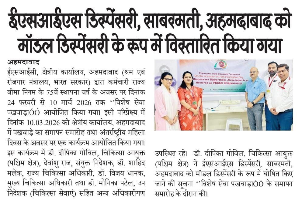 कर्मचारी राज्य बीमा निगम, अहमदाबाद द्वारा क.रा.बी. निगम के 75वें स्थापना दिवस के उपलक्ष्य में आयोजित गतिविधियों के संबंध में प्रेस नोट I size:()